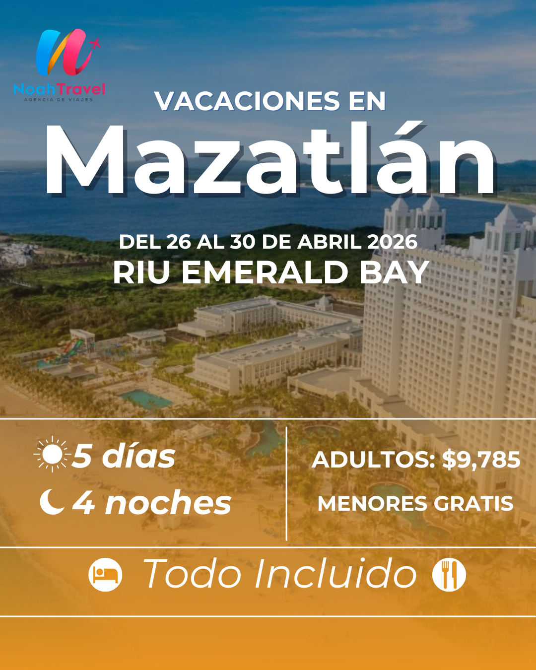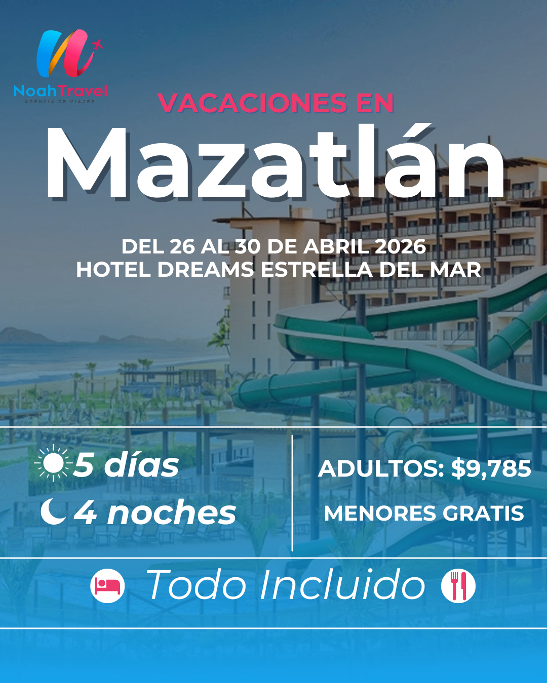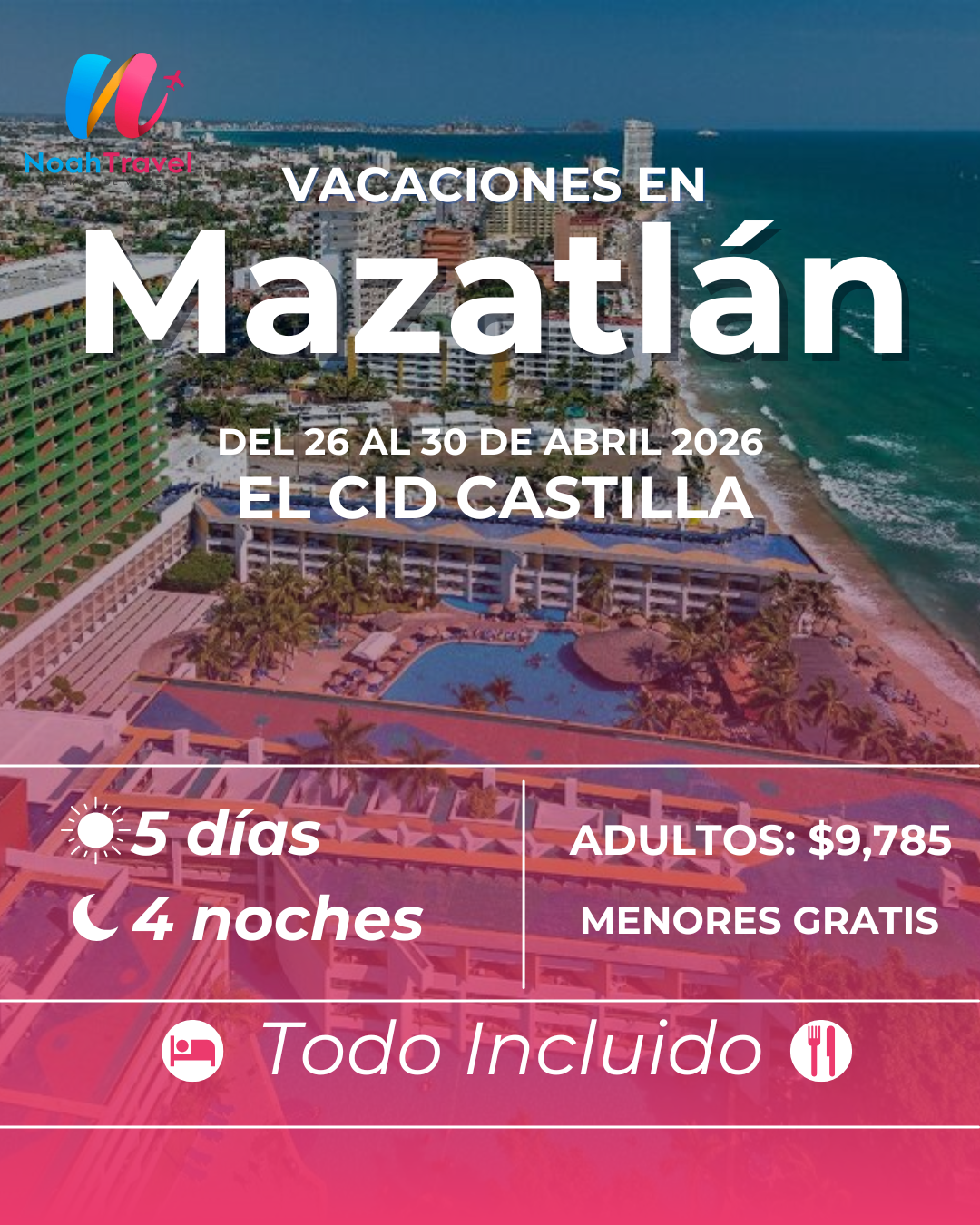 Las playas más hermosas y los hoteles más vendidos de México, todo al mejor precio. Que esta FNSM 2026 sea una experiencia memorable para ti y toda tu familia con nuestros bloqueos. Obtén todos los beneficios que solo Noah Travel te ofrece. Desayuno a la Llegada, menores gratis y ascenso de categoría.